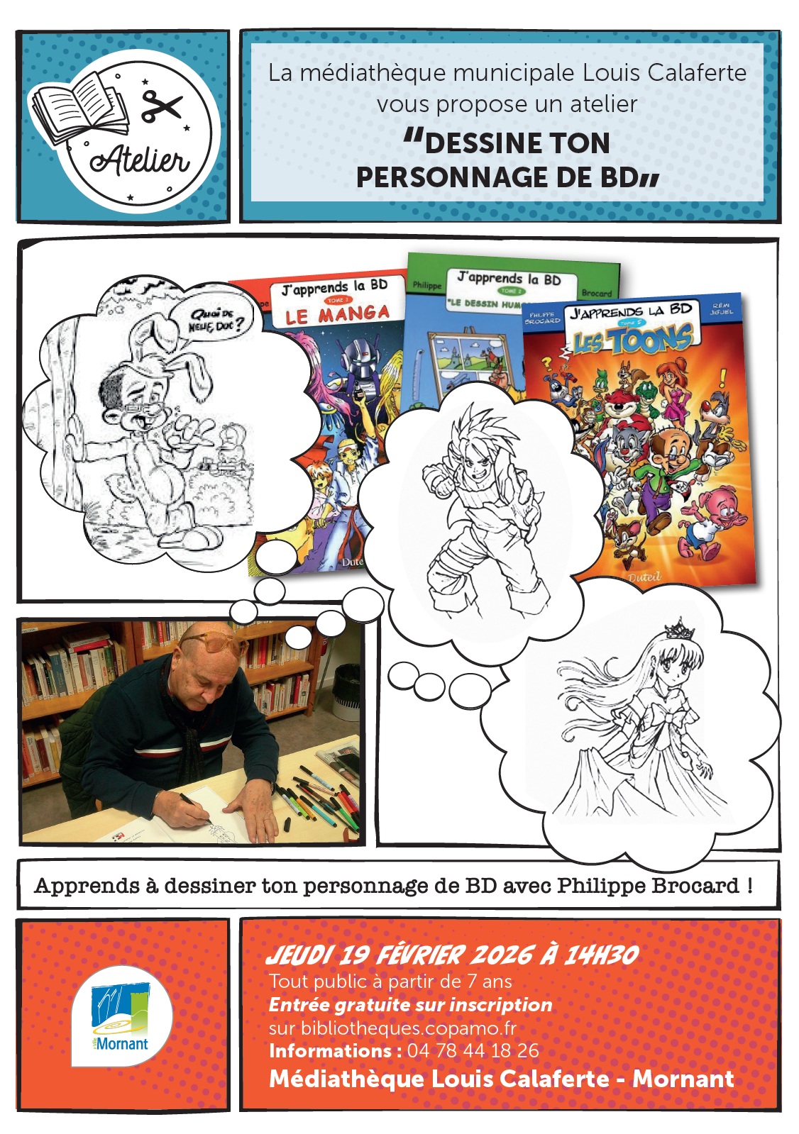 La médiathèque municipale Louis Calaferte vous propose un atelier "Dessine ton personnage de BD".