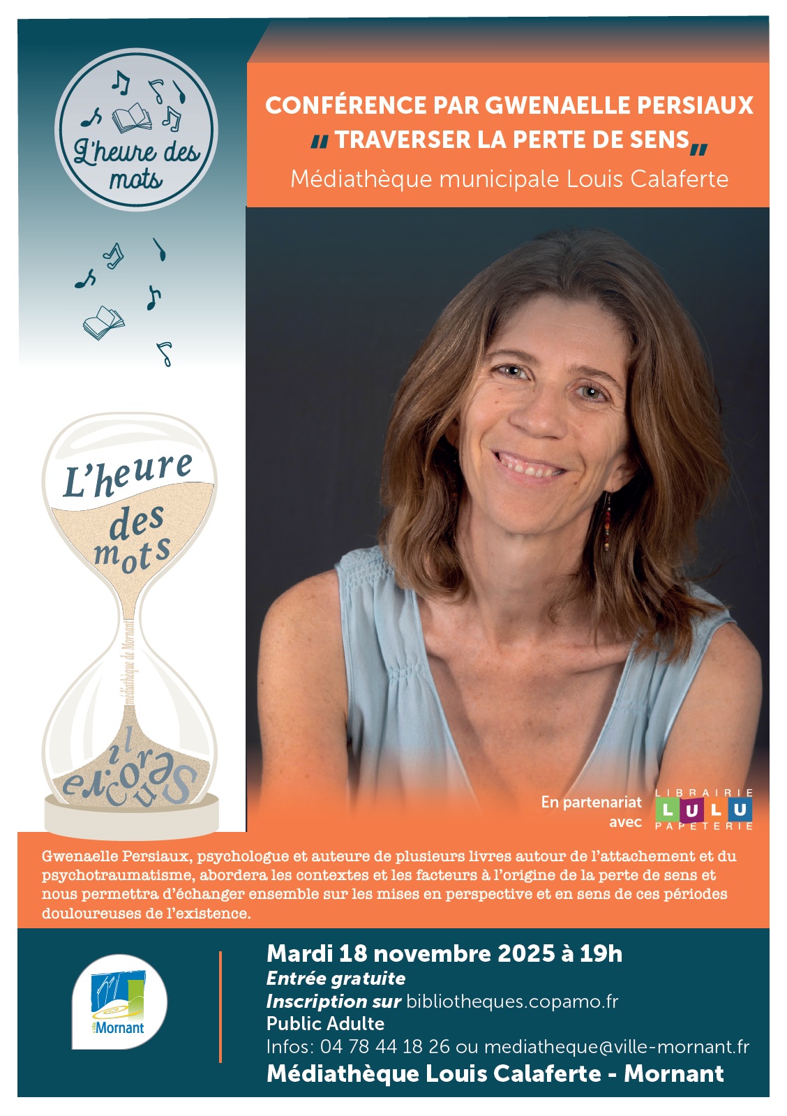 Gwenaelle Persiaux, psychologue et auteure de plusieurs livres autour de l'attachement et du psychotraumatisme, abordera les contextes et les facteurs à l'origine de la perte de sens et nous permettra d'échanger ensemble sur les mises en perspective et en sens de ces périodes douloureuses de l'existence.