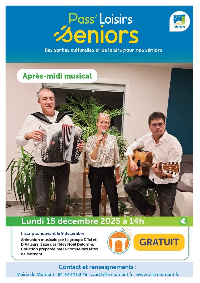 Le CCAS de la ville de Mornant vous propose une nouvelle animation dans le cadre du dispositif « Pass'Loisirs Seniors ».