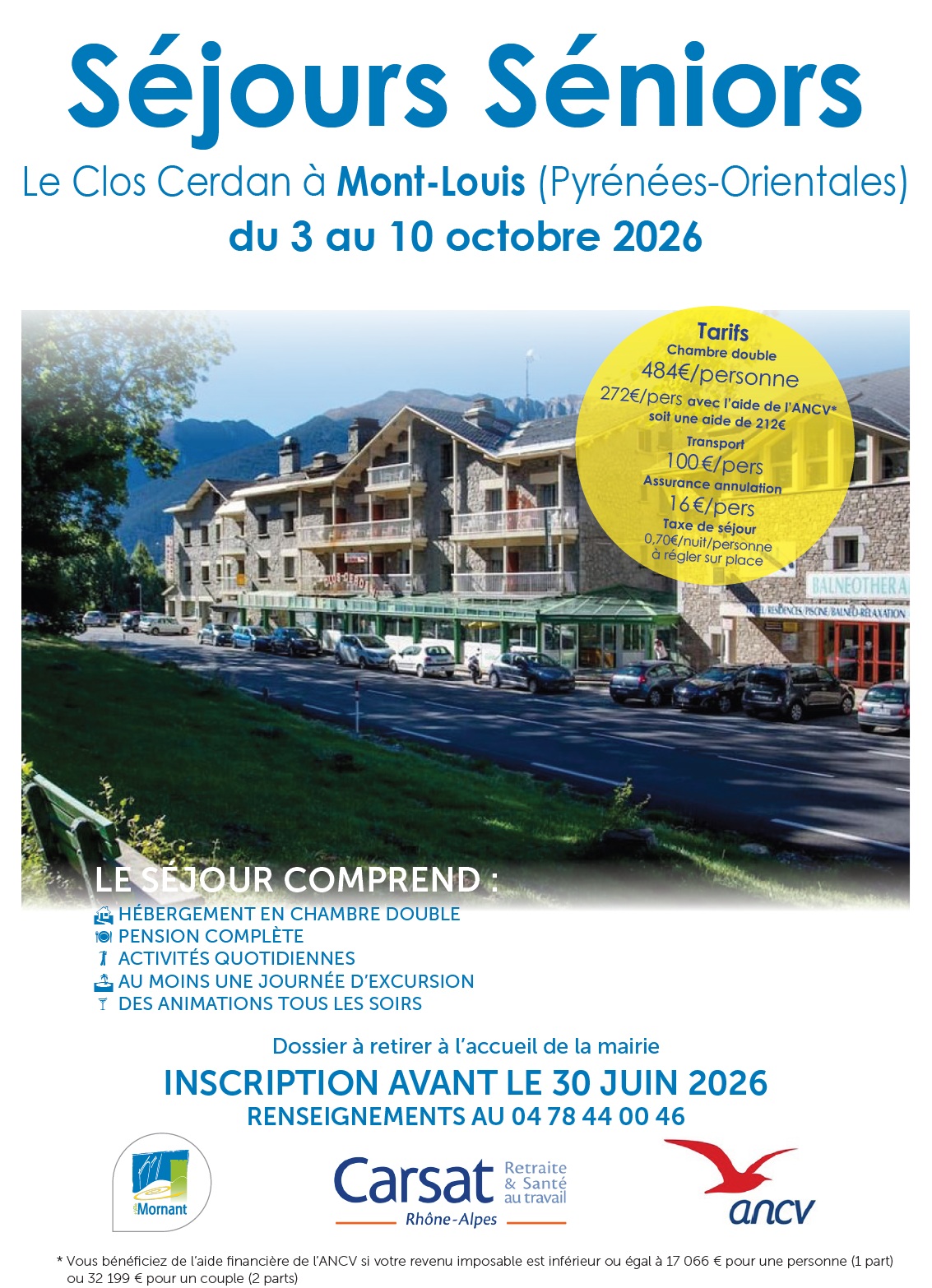 Le CCAS de Mornant vous propose de participer au séjour seniors 2026 du 3 au 10 octobre.