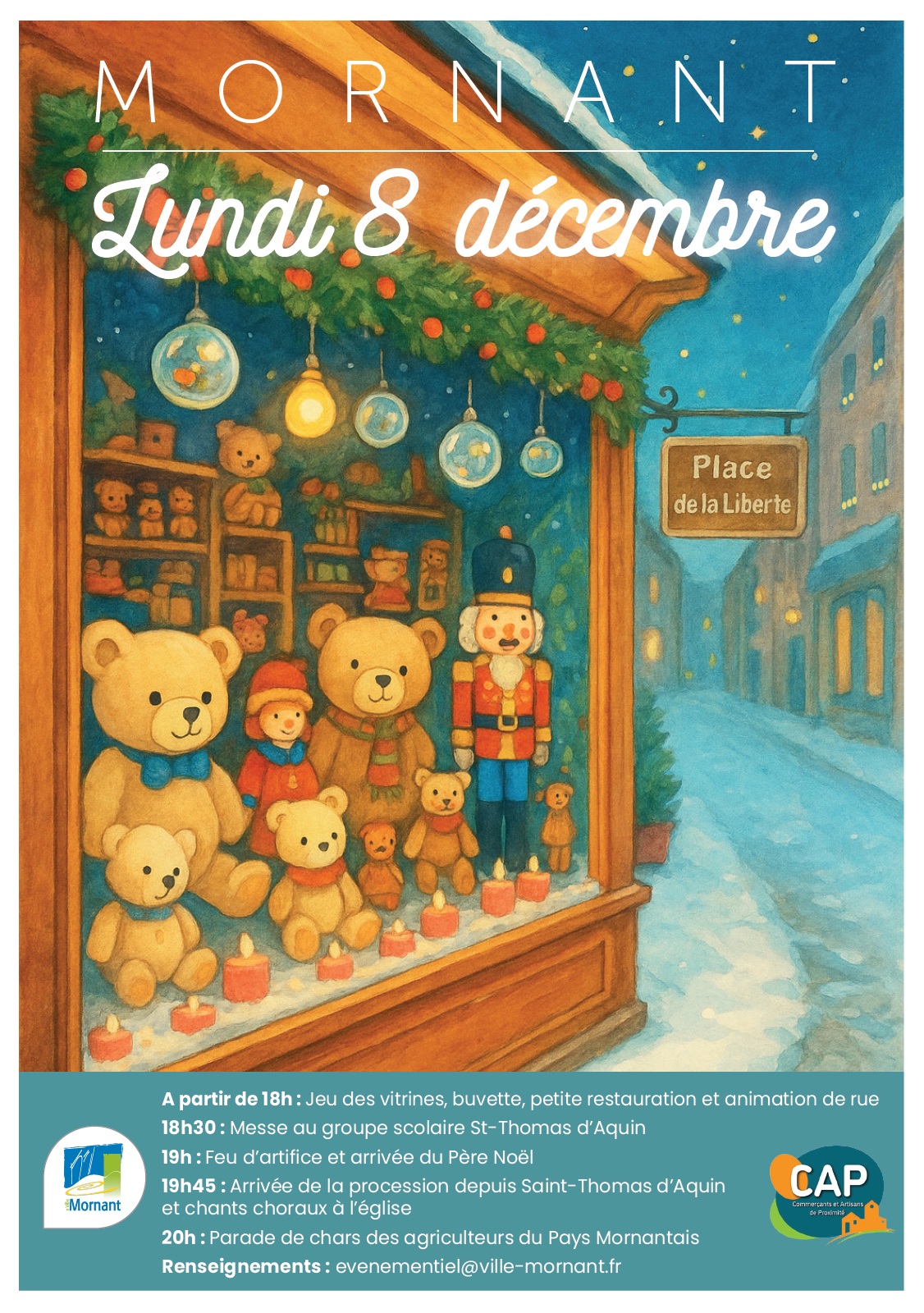 Lundi 8 décembre, dès 18h, la ville de Mornant, en partenariat avec vos Commerçants et Artisans de Proximité (CAP), vous propose sa traditionnelle fête du 8 décembre.
